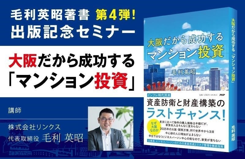 弊社代表著書『大阪だから成功する「マンション投資」』出版を記念して、下記日程で出版記念セミナーを開催いたします。