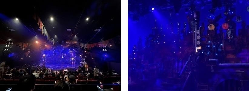 客席への案内係の方がえんとつ町仕様の衣装をまとっていたり、誘導灯がランプだったりと、細部にまでこだわりを感じ、空間に入った瞬間からえんとつ町の世界観に没入することができました。