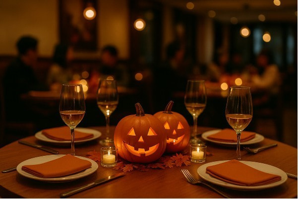 カボチャのランタン、蜘蛛の巣、ガイコツなどの装飾品は、空間をハロウィンムードに演出し、イベントへの期待感を高めます。
