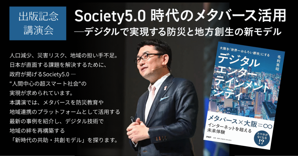 弊社、株式会社リンクス代表の毛利英昭がデジタル技術を活用した地域課題の解決に取り組む第二の事業として率いる株式会社Meta Osakaから、2025年11月28日、毛利の著書『大阪を「世界一おもろい都市(まち)」にする デジタルエンターテインメントシティ』をPHP研究所より刊行いたします。
