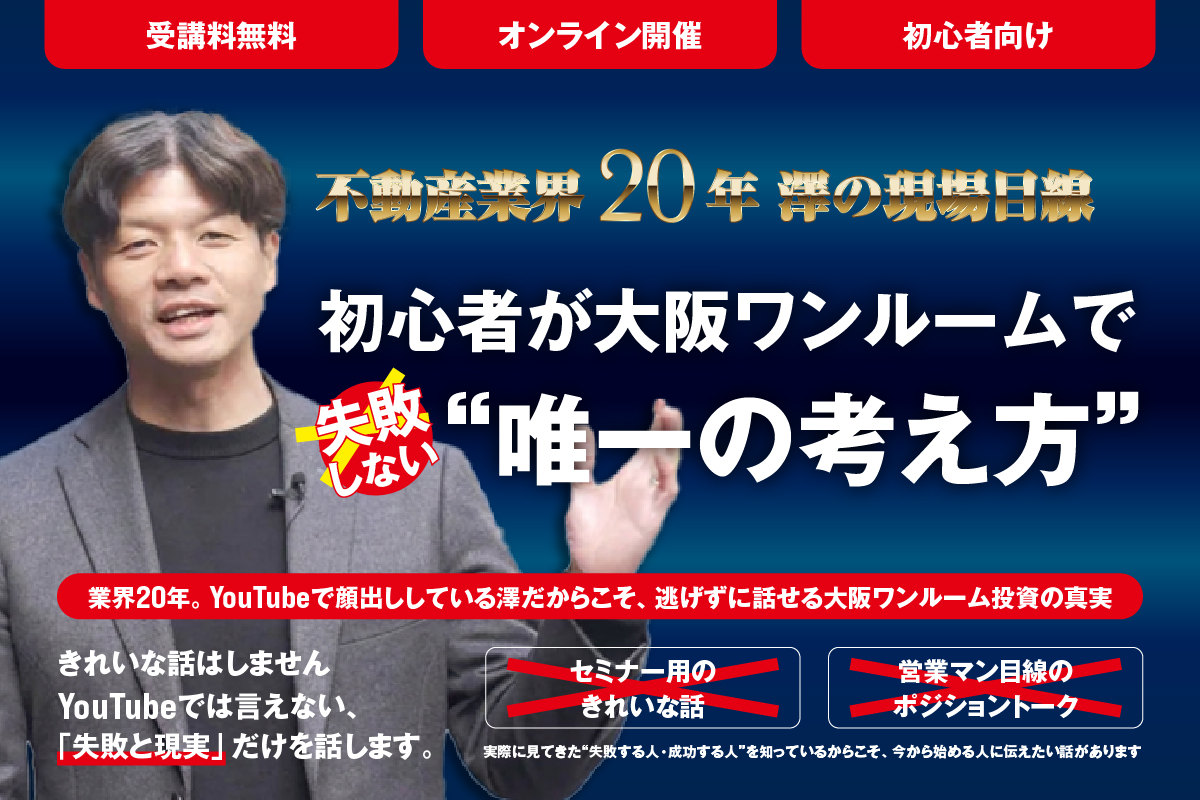 業界20年。YouTubeで顔出ししている澤だからこそ、逃げずに話せる大阪ワンルーム投資の真実