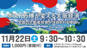 本書にて代表毛利が近未来をコロナ期に予測したとおりに進んできており、着実に大阪中心地のマンションの不動産価値の上昇がデータとして挙がってきています。