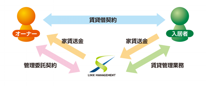 オーナー様と弊社のグループ会社である株式会社リンクスマネジメントの間で転貸借契約(2年更新)を結びます。