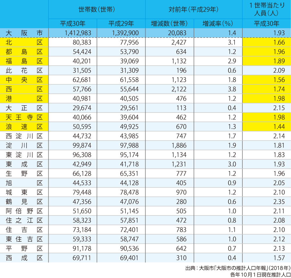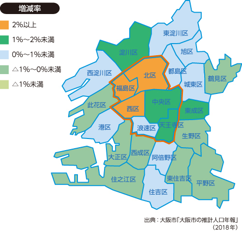 近年の再開発で人口が急速に増えている大阪市の中心部。